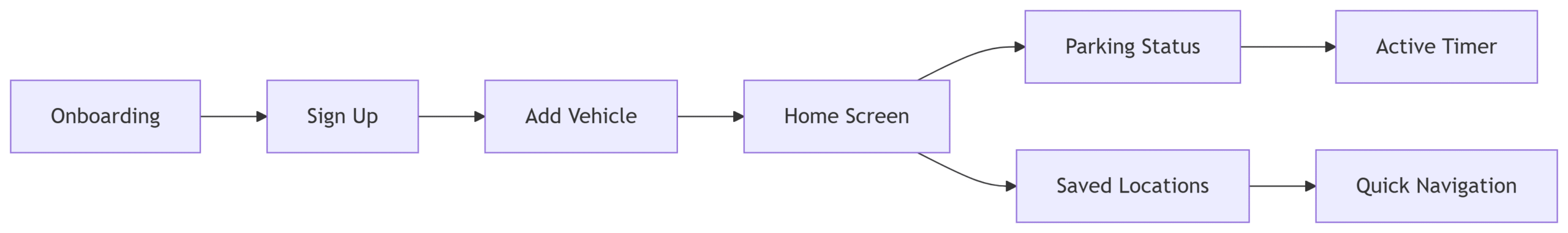 User Authentication: The sign-up process is simplified with a flow that first collects personal details and then vehicle information. Smart defaults, such as pre-set search radii between 0.5 and 2 miles, make onboarding quicker. Password recovery is handled through an intuitive email-based reset flow. The “Sign In” screen subtly encourages new users to join by showcasing social proof.